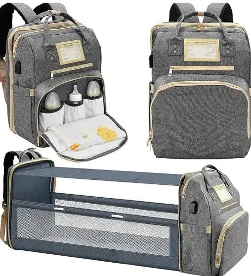 💖 Esta pañalera portátil ideal para mamás modernas 👩 Incluye una cuna desplegable en la parte trasera, perfecta 🎉 para cambiar pañales cómodamente o brindar a tu bebé un espacio seguro para dormir en cualquier lugar 🌟